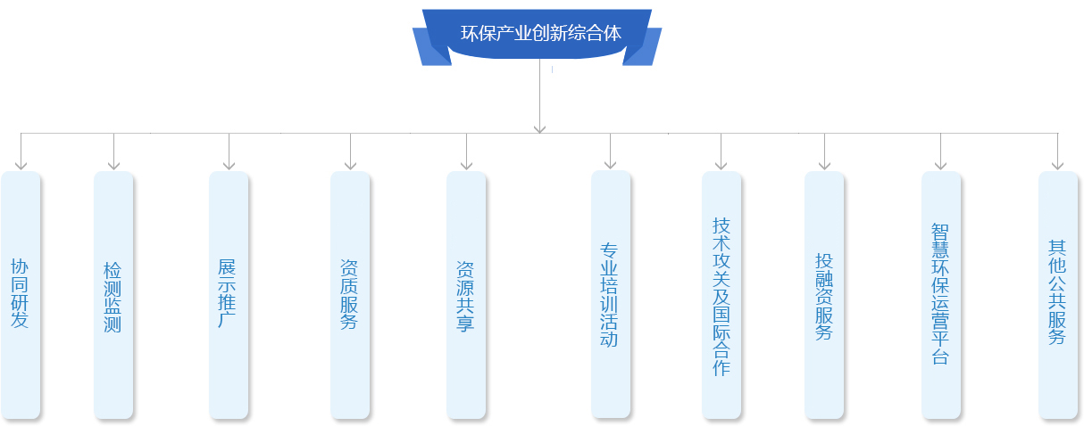 中電環(huán)保發(fā)揮行業(yè)龍頭作用,聯(lián)合“政產(chǎn)學(xué)研金才”綜合資源,打造“環(huán)保產(chǎn)業(yè)創(chuàng)新綜合體”,包括:“二區(qū)、三聯(lián)盟、三中心、七功能”。 二區(qū):國(guó)家級(jí)環(huán)保服務(wù)業(yè)集聚區(qū)、江蘇省級(jí)生態(tài)環(huán)境產(chǎn)業(yè)創(chuàng)新集聚區(qū)。 三聯(lián)盟:環(huán)保產(chǎn)業(yè)技術(shù)創(chuàng)新聯(lián)盟(科技部1個(gè)、生態(tài)環(huán)境部1個(gè)、南京市1個(gè)),同時(shí)成立黨建聯(lián)盟。 三中心:環(huán)保產(chǎn)業(yè)創(chuàng)新中心暨創(chuàng)新公司。分別聯(lián)合南大、東大、河海等及其人才團(tuán)隊(duì)、省環(huán)科院、地方政府,通過(guò)股權(quán)緊密合作,按照“中心+公司”模式建設(shè)新型研發(fā)機(jī)構(gòu)。 以“產(chǎn)業(yè)+平臺(tái)”雙翼模式發(fā)展產(chǎn)業(yè),以市場(chǎng)需求導(dǎo)向研發(fā),促進(jìn)科技創(chuàng)新、人才創(chuàng)業(yè)、成果轉(zhuǎn)化和產(chǎn)業(yè)集聚,孵化高科技企業(yè),賦能產(chǎn)業(yè)創(chuàng)新發(fā)展,打造環(huán)保支柱產(chǎn)業(yè)。